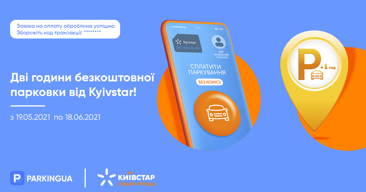 Сплачуйте за паркування у Parking UA мобільним балансом Kyivstar та отримуйте годину парковки у подарунок